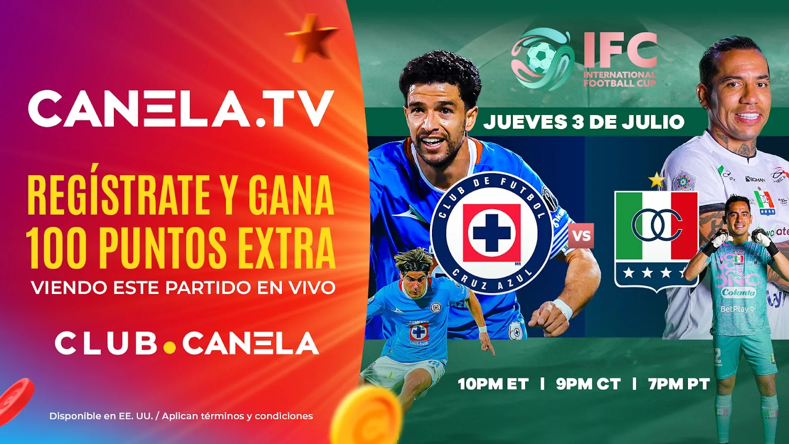 - 10:00 PM ET: Cruz Azul vs Once Caldas, disponible a través de los canales Canela Deportes y Canela.TV
