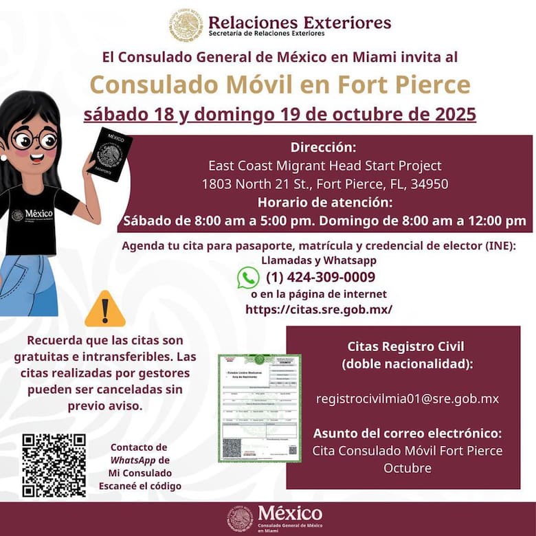 El único lugar autorizado para expedir pasaportes mexicanos en el sur de Florida es el Consulado General de México en Miami, ubicado en: