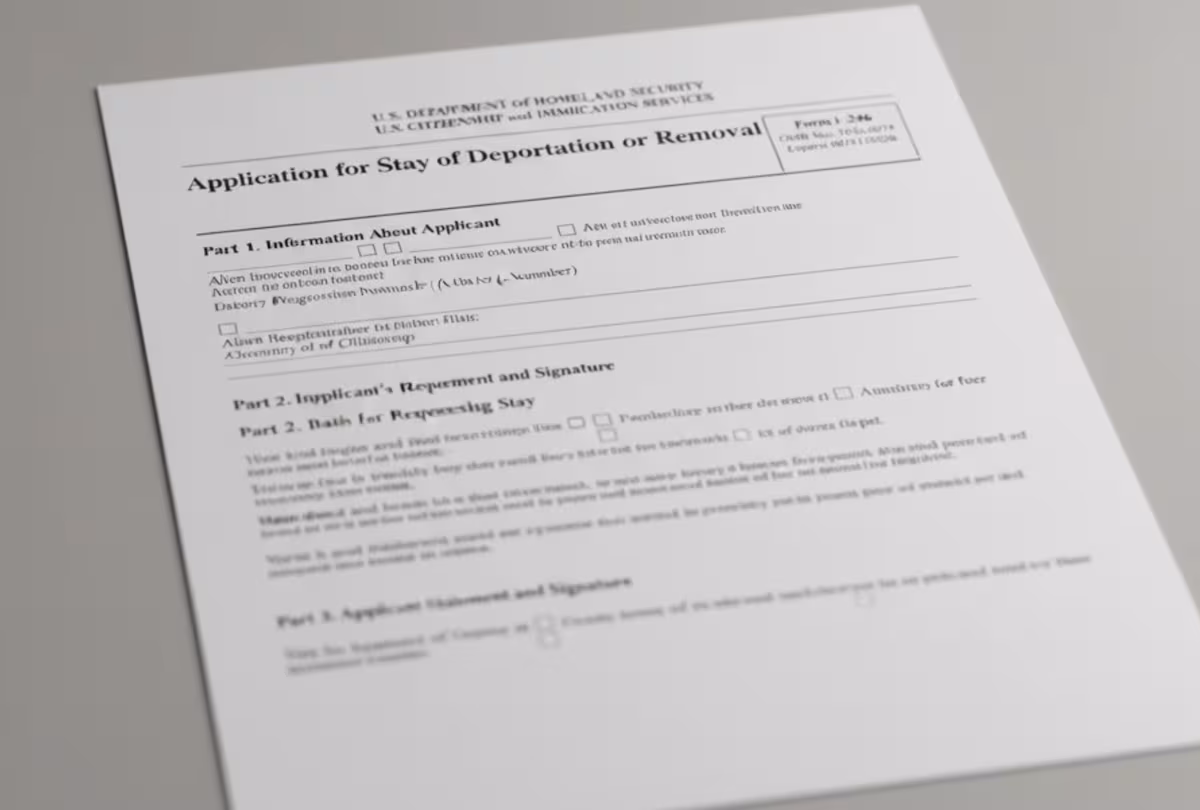 El formulario I-246, conocido también como suspensión de deportación, es un documento que debe presentarse cuando existe una orden final de deportación o remoción. Su propósito es detener temporalmente la ejecución de esta orden para que la persona tenga tiempo adicional para resolver aspectos legales, presentar defensas o atender razones humanitarias.